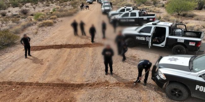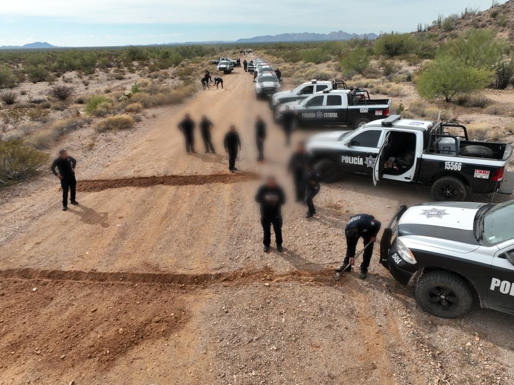 Caborca, Sonora; 30 de noviembre del 2023.- Identifican y destruyen pista clandestina durante operativos de vigilancia de la Policía Estatal de Seguridad Pública (PESP) y Secretaría de la Defensa Nacional (Sedena), ubicada entre los municipios de General Plutarco Elías Calles y Caborca.