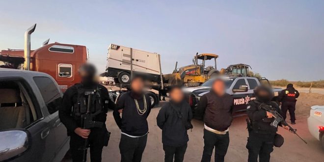 Sonoyta, Sonora; 14 de diciembre de 2024.- Una rápida y eficaz reacción de agentes de la Policía Estatal de Seguridad Pública y Guardia Nacional llevó a la aprehensión de tres presuntos responsables de robo con violencia y el probable homicidio del copiloto de un tractocamión.