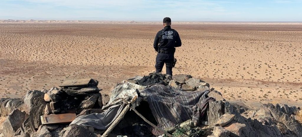 Al realizar patrullajes por la zona cercana a la línea fronteriza de Nogales, oficiales de la Policía Estatal de Seguridad Pública (PESP) ubicaron un campamento construido con ramas y palos en la cima de un cerro donde había restos de latas de comida, ropa, utensilios de cocina, entre otros artículos.