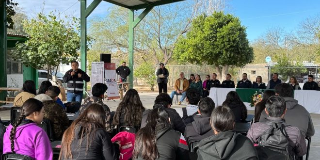 Mazatán, Sonora; 13 de febrero de 2025.- Estudiantes del Centro de Bachillerato Tecnológico Agropecuario (CBTA) 53 ubicado en Mazatán, recibieron información sobre los programas para prevenir la violencia familiar y de género de la Secretaría de Seguridad Pública (SSP).