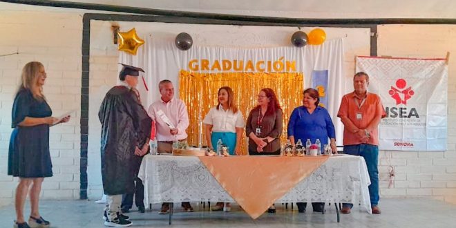 María Engracia Carrazco Valenzuela, directora general del ISEA, y Diana Platt Salazar, directora general del ITAMA, entregaron los certificados de primaria y secundaria a los graduados, a quienes alentaron a aprovechar las oportunidades de formación y desarrollo que les ofrece el Gobierno de Sonora.