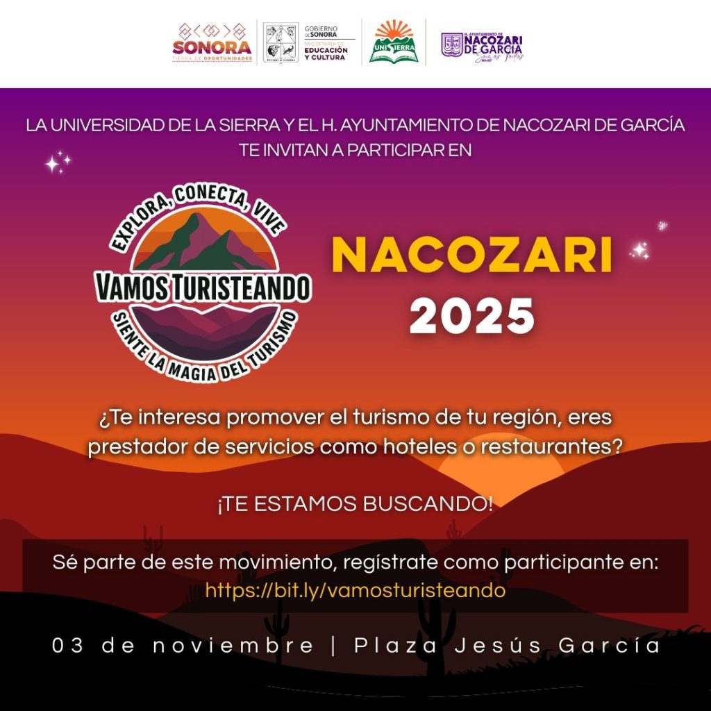 La iniciativa, promovida por los Embajadores Universitarios del programa educativo de la Licenciatura en Turismo, cuenta con el apoyo del Ayuntamiento de Nacozari de García y está orientada a fortalecer el turismo regional en la sierra sonorense.