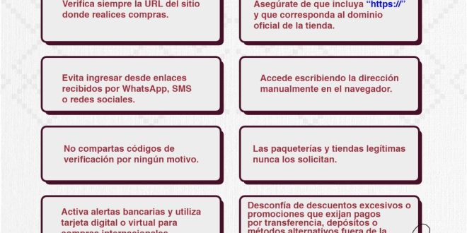 - Verifica siempre la URL del sitio donde realices compras. Asegúrate de que incluya “https://” y que corresponda al dominio oficial de la tienda.