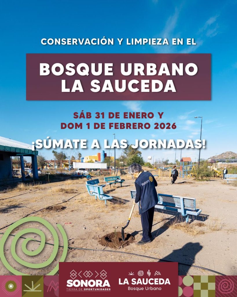 Hermosillo, Sonora; 29 de enero de 2026.– El Gobierno de Sonora invita a la comunidad a participar en las diversas actividades que se llevarán a cabo este fin de semana en el Bosque Urbano La Sauceda, un espacio de encuentro que promueve el bienestar, la cultura, el aprendizaje y el cuidado del medio ambiente para personas de todas las edades.