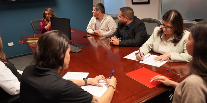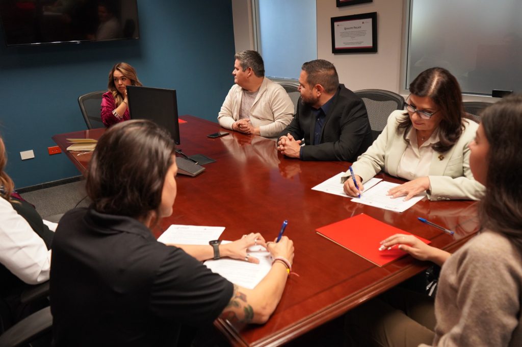 La directora general del Itesca, Margarita Vélez de la Rocha, firmó un convenio de colaboración con Yolanda María Félix García y Edson Orozco Armenta, directora de Finanzas y director de Recursos Humanos, respectivamente, de Pinnacle Software Engineering, empresa dedicada al desarrollo de software.