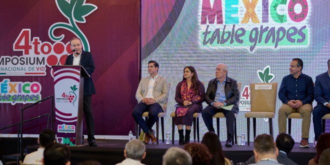 Durante el 4to Simposio Internacional de la Vid, el mandatario sonorense destacó que el estado mantiene alrededor de 16 mil hectáreas de uva de mesa con estabilidad productiva en los últimos cinco años, reflejo de una estrategia integral que prioriza la modernización agrícola, el uso eficiente del agua y la innovación tecnológica en el cultivo.