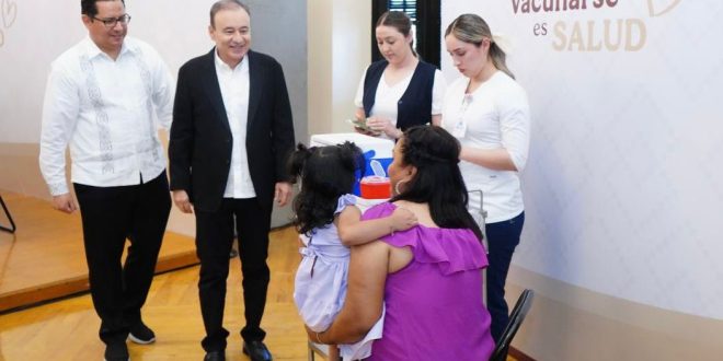 -El mandatario sonorense hizo un llamado a aplicarse la vacuna gratuita para fortalecer la cobertura contra el sarampión con biológicos disponibles en todos los centros de salud y operativos en zonas prioritarias.