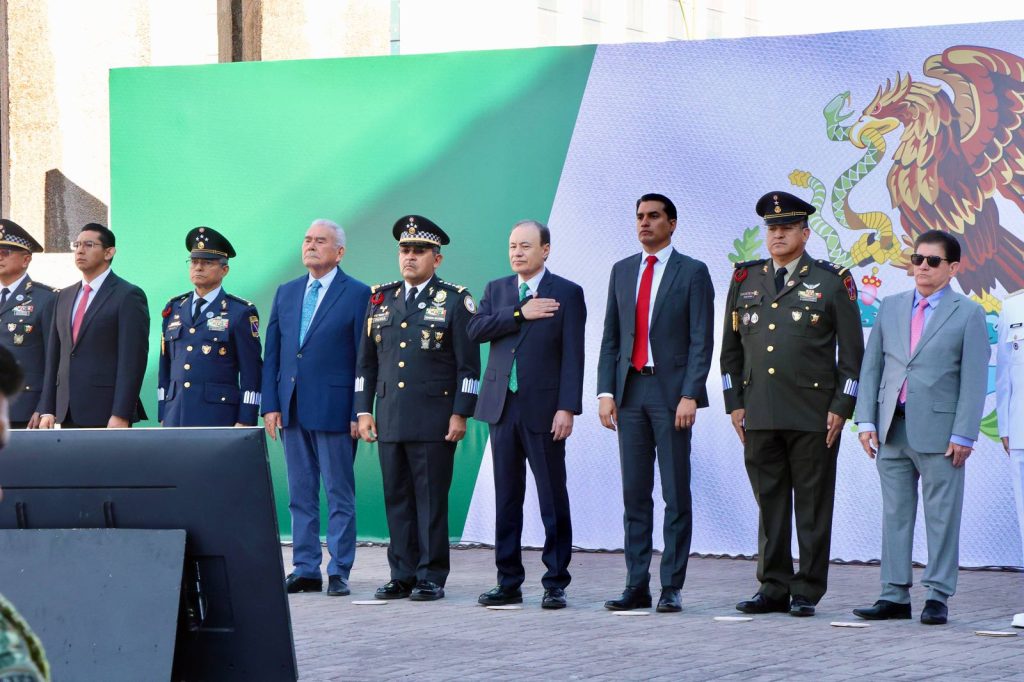Durante su mensaje, el mandatario estatal subrayó que la bandera nacional representa siglos de identidad, lucha y compromiso, además de reflejar el juramento que convoca a las y los mexicanos a honrarla con responsabilidad y sentido de pertenencia.