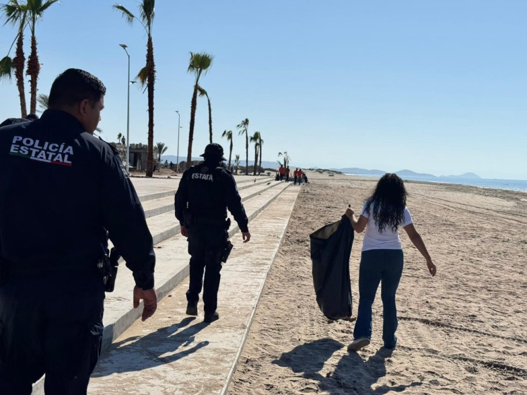 Empalme, Sonora; 24 de marzo de 2026.– Ante la importancia de contribuir en la generación de entornos seguros y limpios donde las familias tengan actividades de sano esparcimiento, la estrategia de la Jornada Permanente por la Paz que impulsa la Secretaría de Seguridad y Protección Ciudadana (SSPC) en Sonora realiza acciones de limpieza en playas del Cochorit.