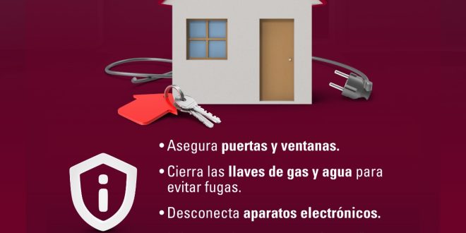 Refirió que es importante asegurarse de cerrar correctamente puertas y ventanas de sus hogares, cerrar llaves de gas y agua para prevenir fugas, desconectar aparatos eléctricos e informar a personas de confianza sobre su ausencia.