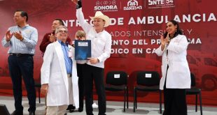 Hermosillo, Sonora; 19 de agosto de 2025.- Con el firme compromiso de garantizar atención médica oportuna y de calidad a las y los sonorenses, y dar solución a una demanda histórica del personal de salud, el gobernador Alfonso Durazo Montaño encabezó la entrega de dos ambulancias de cuidados intensivos y …