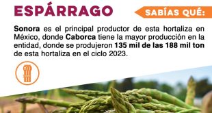 Hermosillo, Sonora; 7 de julio de 2023.- Sonora es el estado número uno en producción de espárrago en México y el municipio de Caborca es el principal productor en la entidad, con una producción de 135 mil de las 188 mil toneladas de esta hortaliza en el ciclo 2023. De …