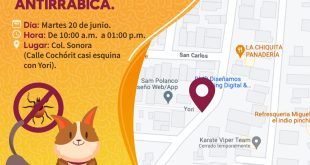 Guaymas, Sonora, 19 de junio de 2023.- Este 20 de junio, el Ayuntamiento de Guaymas en coordinación con Desarrollo Social y Salud Pública Municipal llevará la ‘Jornada de desparasitación y vacunación antirrábica’ en el colonia Sonora a partir de las 10:00 am a 13:00 horas. La Doctora Santa Russell, titular …