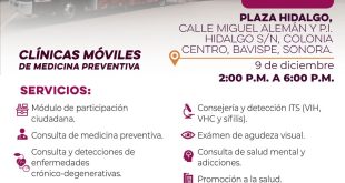 Hermosillo, Sonora; 7 de diciembre de 2025.- La Secretaría de Salud informa que las Clínicas Móviles de la Jornada de Salud Colectiva estarán disponibles en distintos municipios de la sierra para acercar atención médica gratuita a las comunidades que más lo necesitan. Estas unidades brindan servicios esenciales y fomentan el …